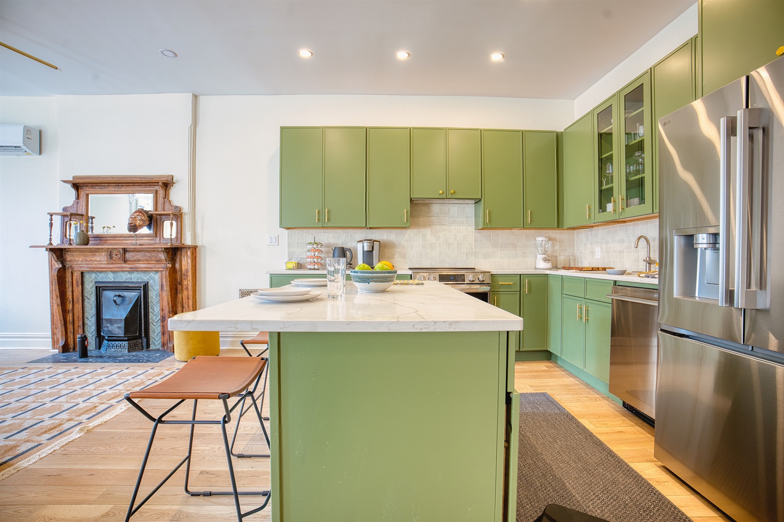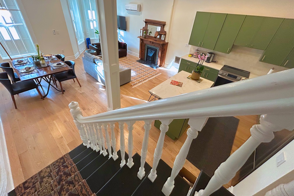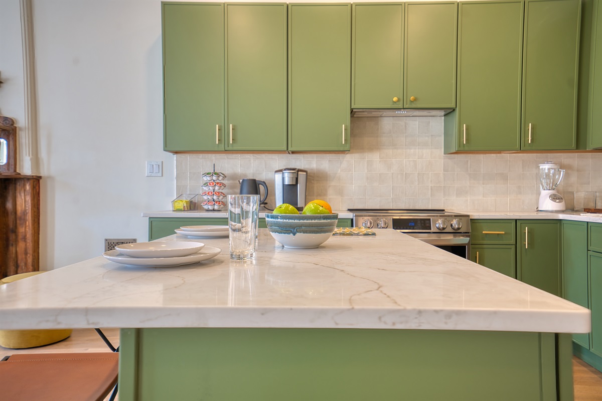 ✓ Open layout kitchen with quartz island, Nespresso, seating for 6