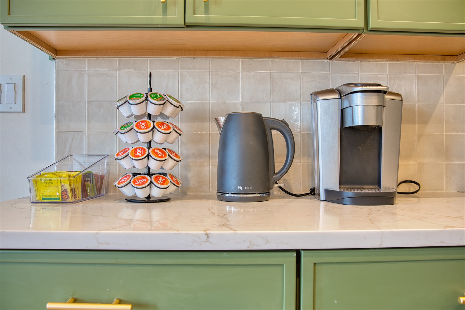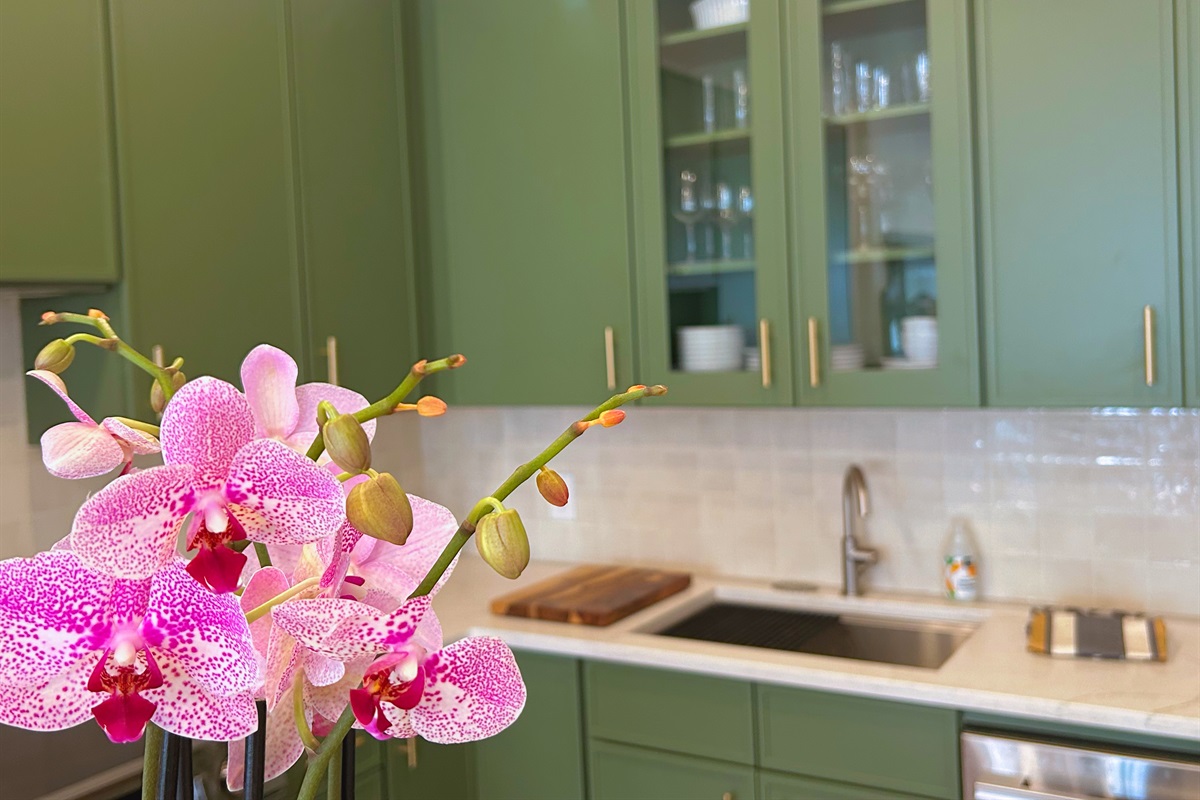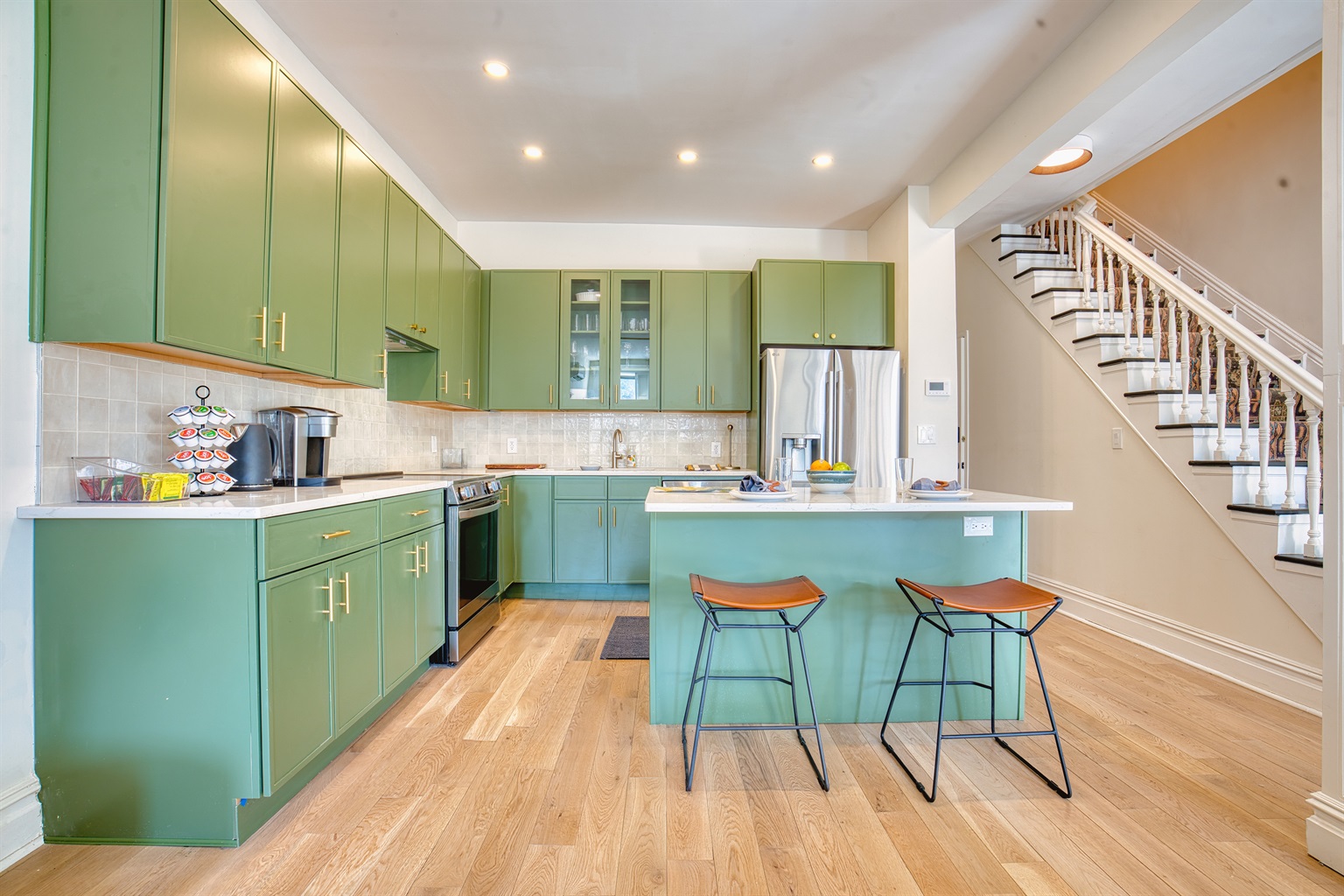 ✓ Open layout kitchen with quartz island, Nespresso, seating for 6